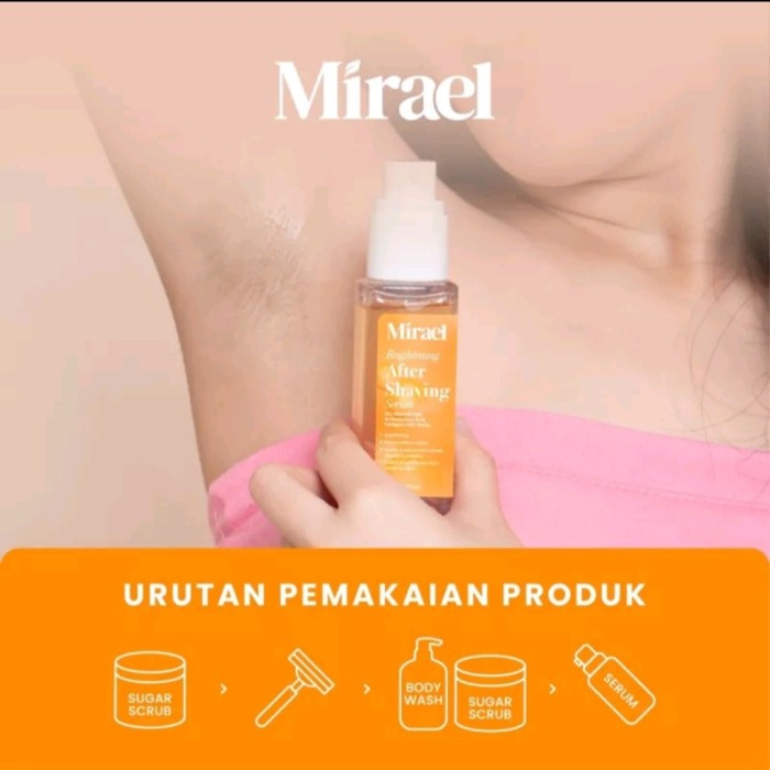 Cara Pakai : Tekan pump Mirael Brightening After Shaving Serum sebanyak 1-2 kali & oleskan ke area tubuh setelah shaving.