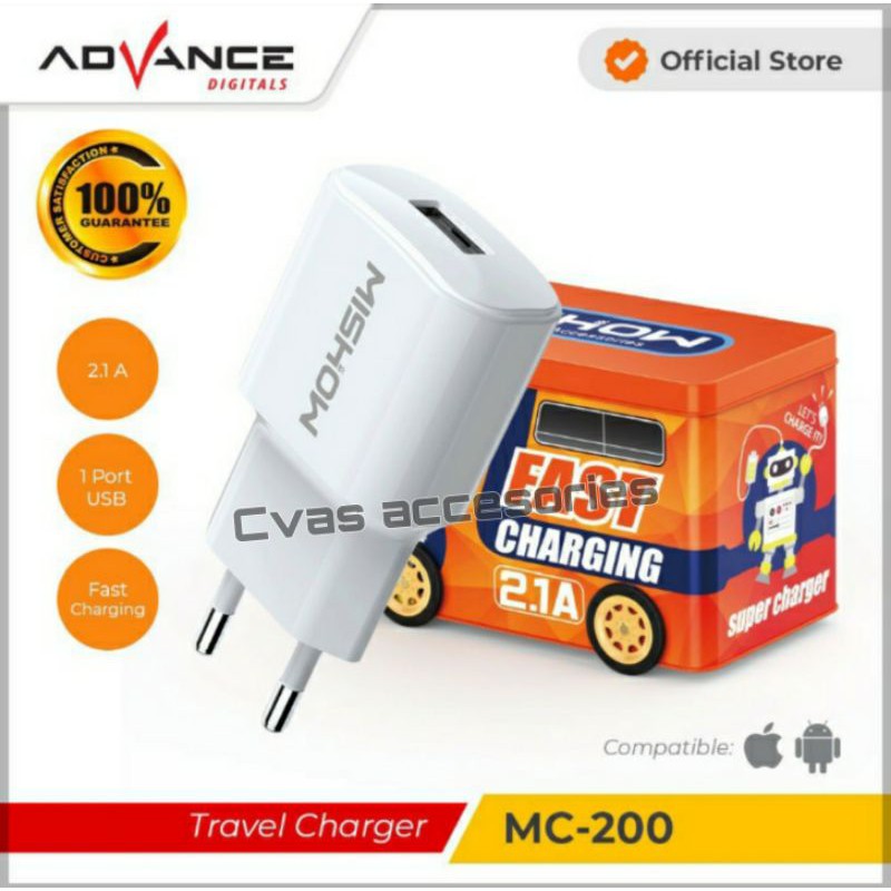 Mishow MC200 Charger merupakan USB charger yang dilengkapi dengan single USB. Charger ini terbuat dari material PC + ABS, Charger ini mampu mengeluarkan output 2.1A max usb, dan medukung fastcharging. dimensi 225mm X 130mm X 140mm.