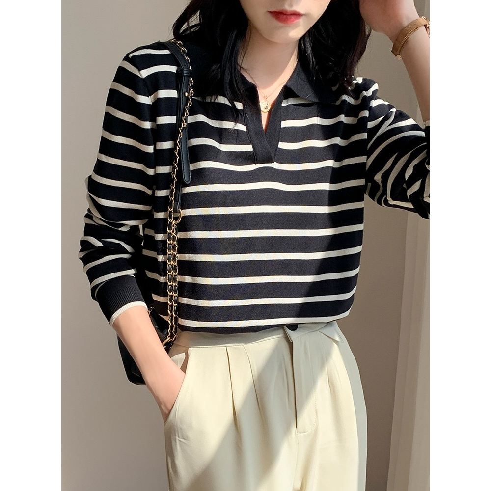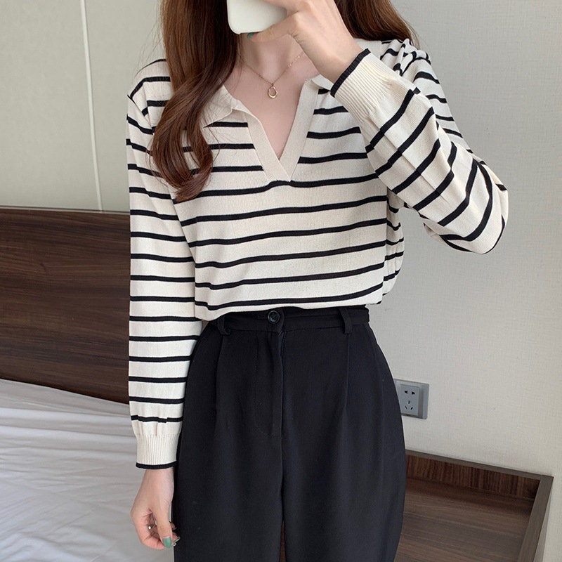 Pakaian Wanita > Sweater & Cardigan > Miss H ~ 267 Pakaian Wanita Inner Rajut Premium Lengan Panjang Import Bahan Adem Baju Wanita Sweater Wanita Motif Garis Belang