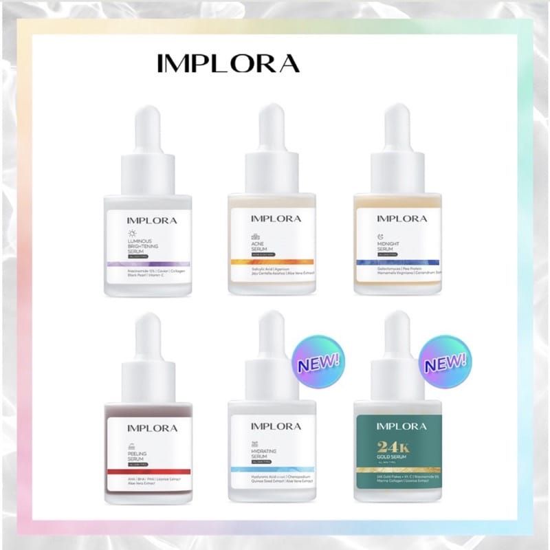❤ LUMINOUS BRIGHTENING SERUM Implora Luminous Brightening Serum mengandung Niacinamide 10% dan Kakadu Plum yang kandungan vitamin C nya 70 kali lebih banyak dari buah jeruk, yang dapat membantu mencerahkan, melembabkan, menyamarkan noda hitam serta menutrisi kulit. Dapatkan tampilan kulit yang sehat dan bersinar dengan menggunakan secara rutin. - Direkomendasikan untuk semua jenis kulit - Penggunaan pagi dan malam hari - Mengandung : Niacinamide 10%, Caviar Collagen, Black pearl, Vitamin C