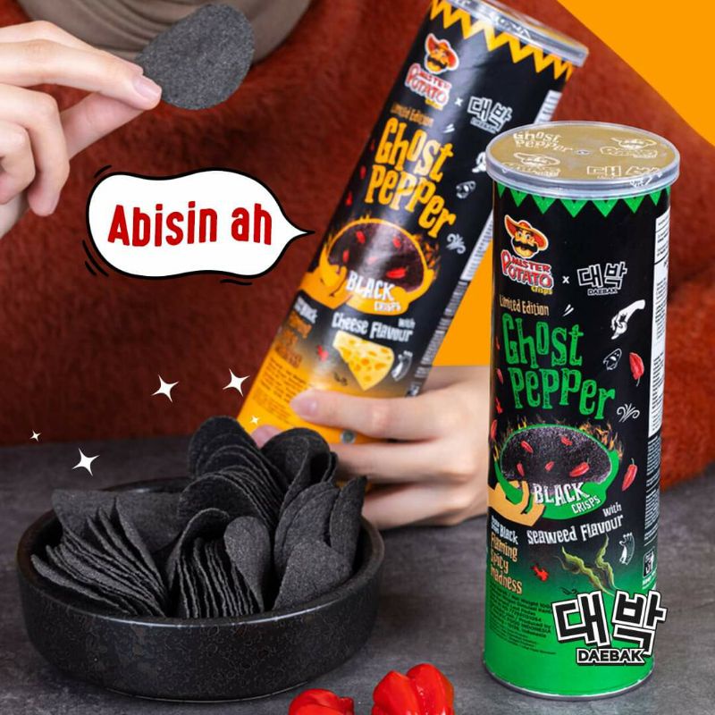 Detail Mister Potato Ghost Pepper black crisps limited edition / keripik kentang hitam Mr Potato spicy 100 gr