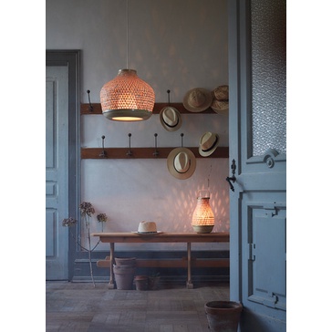 Setiap lampu unik karena terbuat dari bambu dengan variasi warna alami dan dirajut oleh tangan pengrajin ahli.