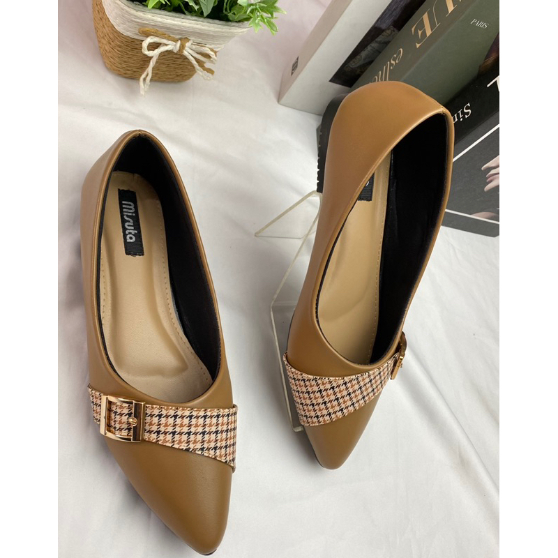 DESKRIPSI PRODUK MISUTA : - Kondisi : 100% Baru dan Kualitas Tinggi - Warna : bata/hitam l cream - Material : sintetis - Sole : Fiber Non Slip - Tinggi Hak : 2cm