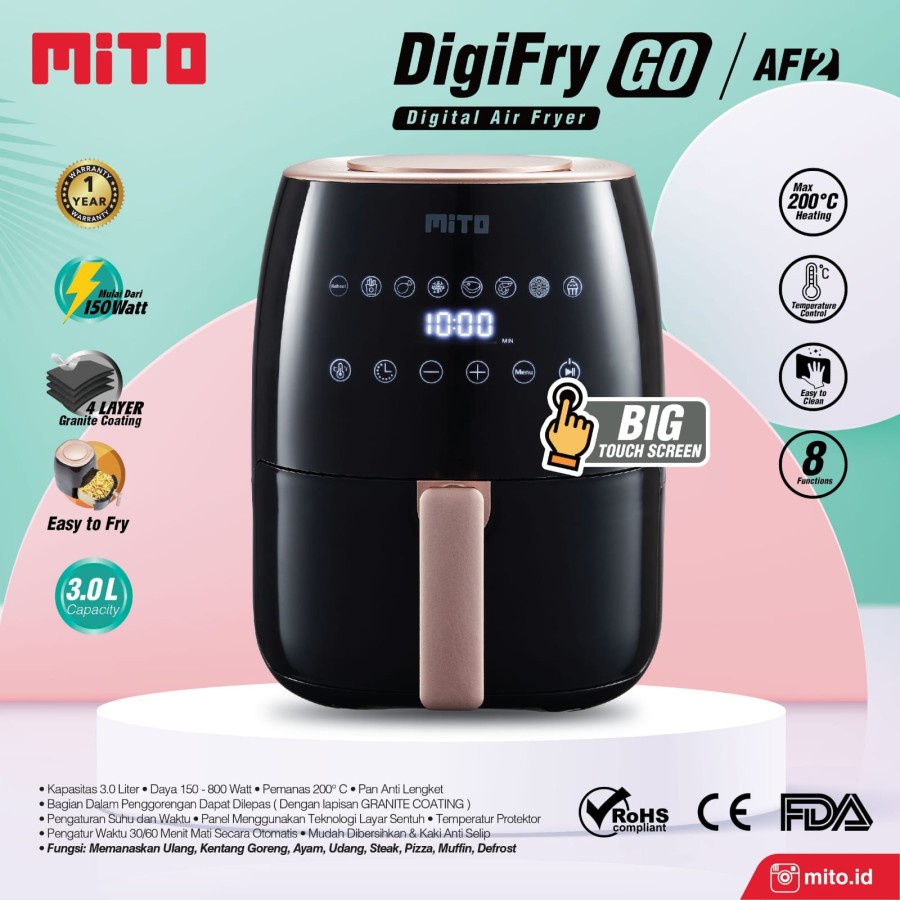 Detail Mito Airfryer AF 2 Fryer AF2 Digifry Go 3 Liter Low Watt Penggorengan Tanpa Minyak