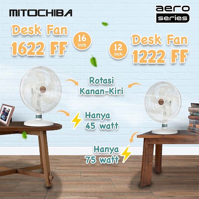 Detail MITOCHIBA Kipas Angin Desk Fan Aero Series 1622 FF / 1622FF / Kipas Angin Meja 16 Inch