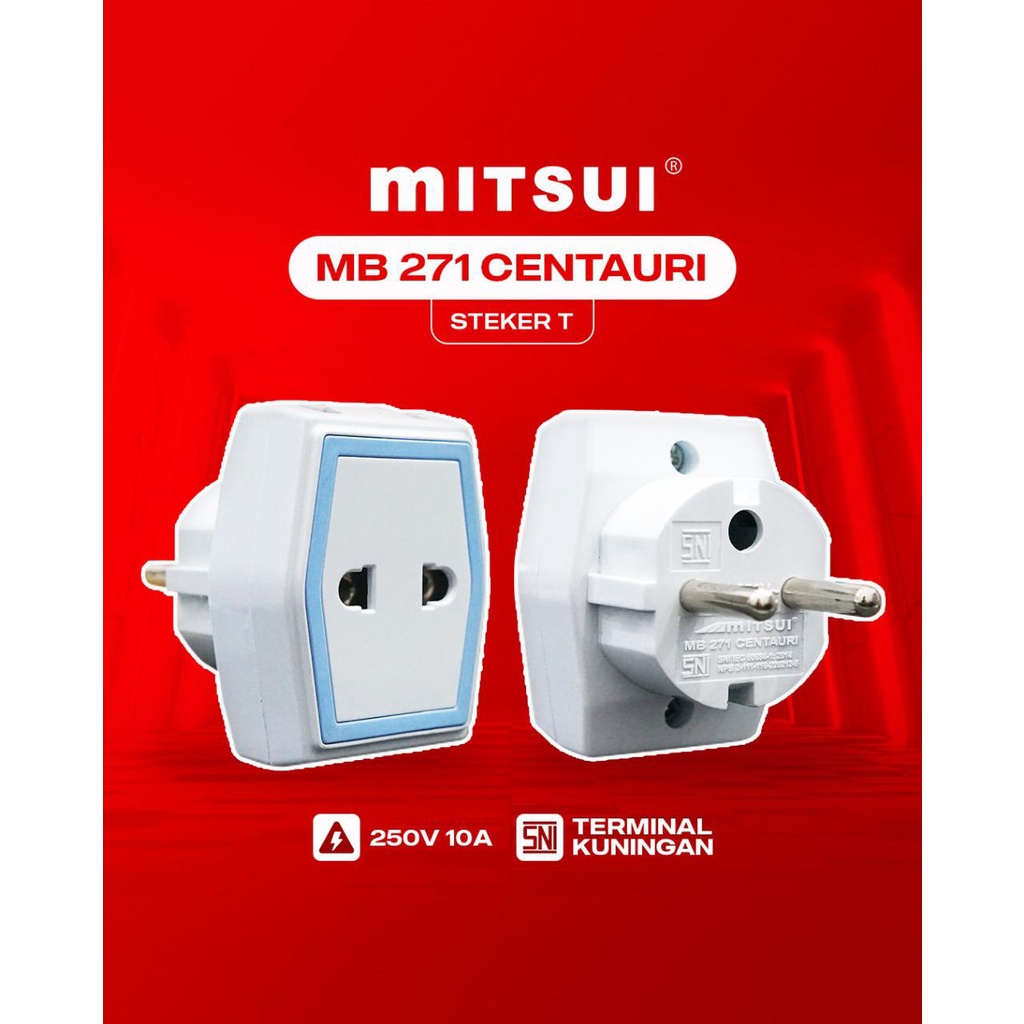 Detail Mitsui Centauri Stop kontak T Datar 3 cabang steker