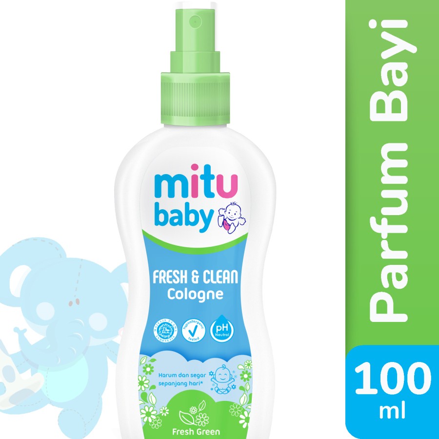 Agar bayi tetap segar dan wangi sepanjang hari, semprotkan Mitu Baby Cologne pada tubuh bayi setelah mandi.