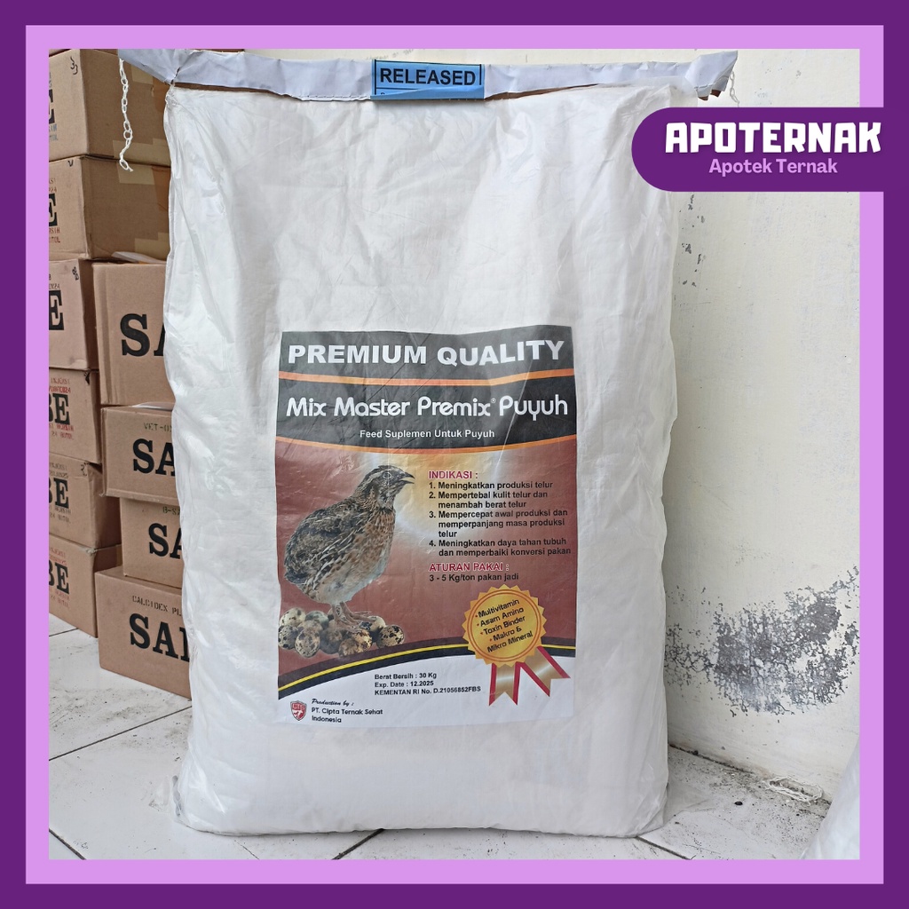 Hobi & Koleksi > Perawatan Kesehatan Hewan > Vitamin & Suplemen > MIX MASTER PREMIX PUYUH 30 kg | Suplemen Untuk Meningkatkan Produksi Telur Puyuh | Multivitamin, Asam Amino, & Mineral