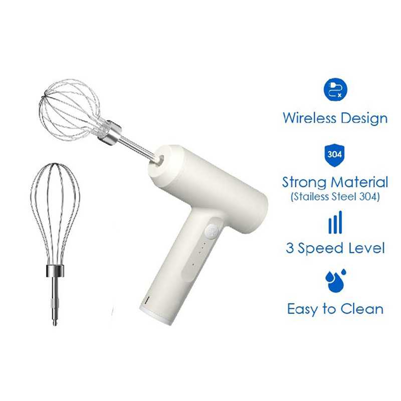 Bebas Bergerak, Tanpa Terbatas Kabel Mixer tangan menggunakan kabel adalah produk kuno yang sudah harus Anda tinggalkan. Karena mixer yang satu ini didesain tanpa kabel atau wireless sehingga Anda dapat menggunakannya dengan sangat nyaman.