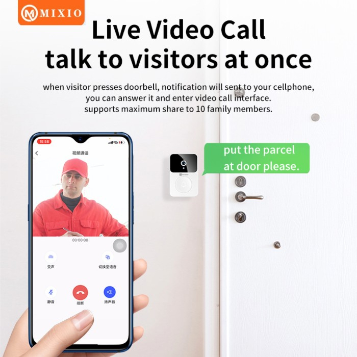 MIXIO - Smart Home Wifi Video 1080p Doorbell X9 Audio Bel Pintu Rumah