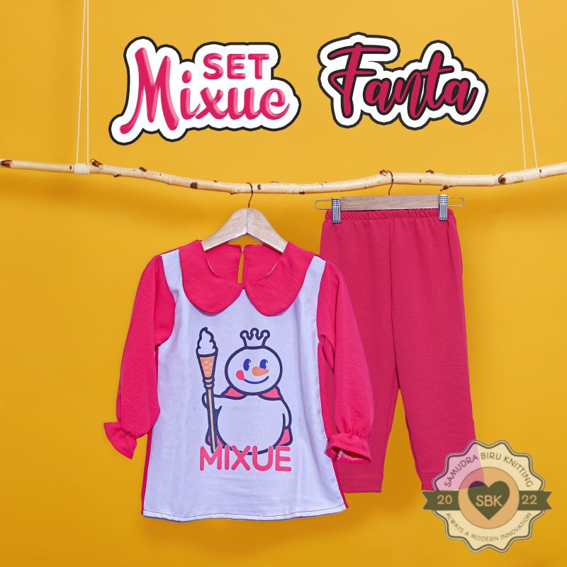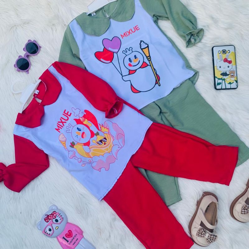 Baju Setelan Mixue Viral Bahan Crinkle Airflow Premium Import Usia 1-9 Tahun