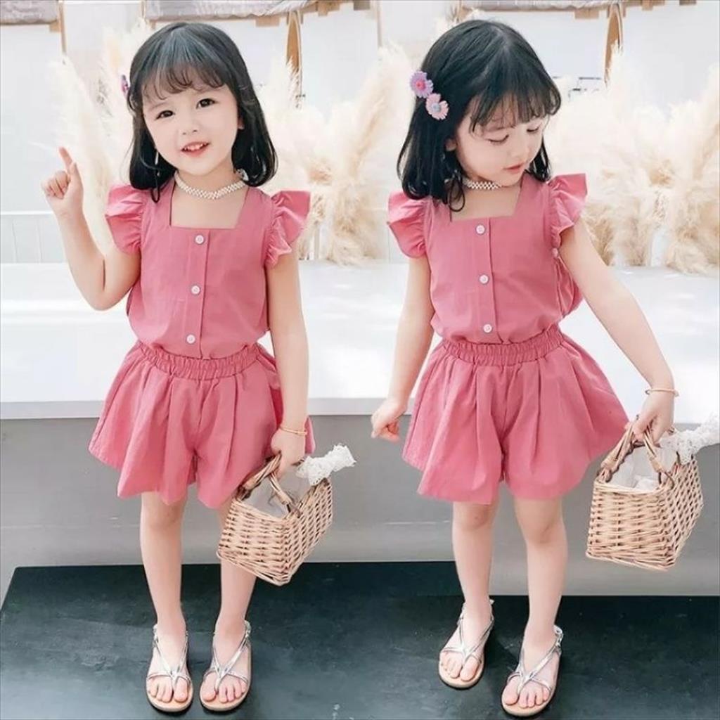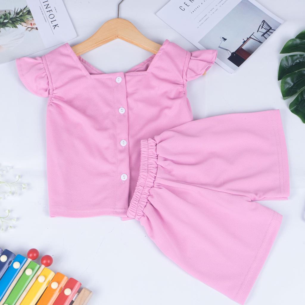MJS 1.103 - Setelan Baju Anak Tropika Atasan Bawahan Anak Perempuan Batita Kancing Ruffle Lucu