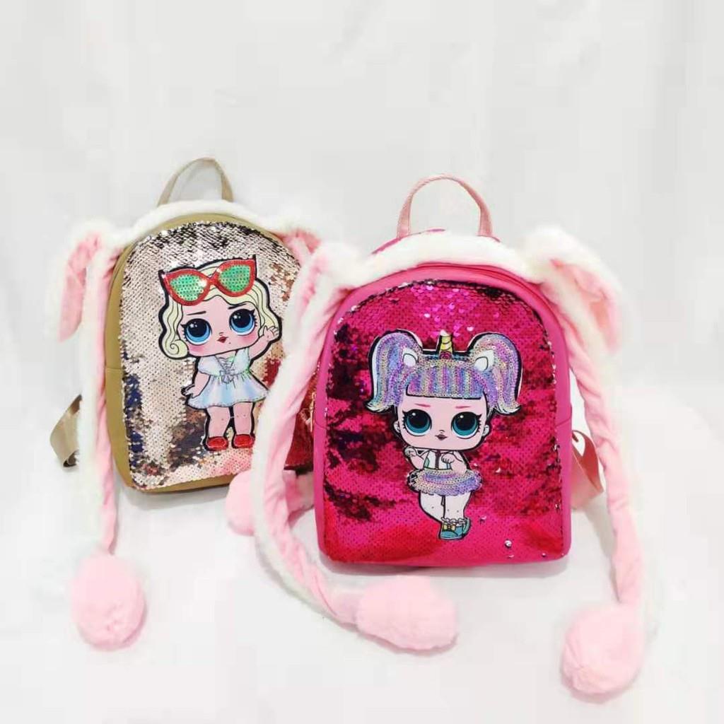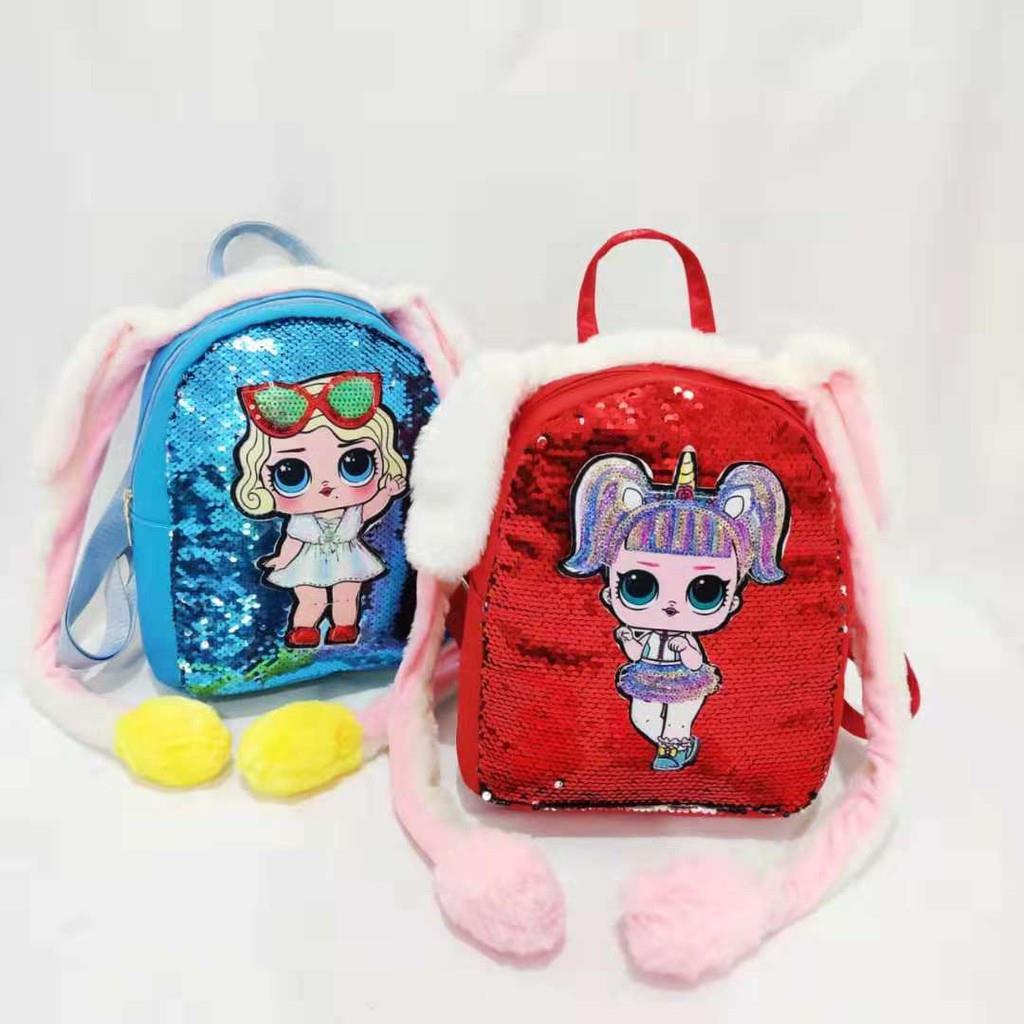 Bahan : SEQUINS Dimensi : +/- 28 X 14,5 X 24 Produk : Produksi Import Berat : 400 GR Kode : KC : [Gambar LOL Bunny kacamata merah] UNI : [Gambar LOL Bunny rambut unicorn]