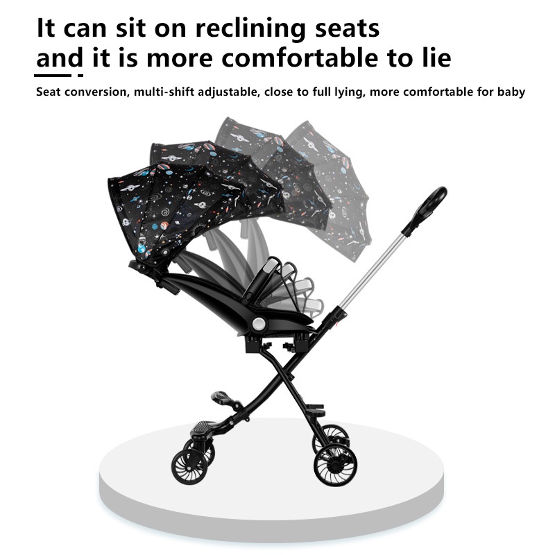 💎Two-way 180 degree swivel seat, adjustable 💎One-hand folding does not remove the seat 💎3-point seat belt to protect children 💎The sunroof/sunshade is made of high-quality high-quality material and is removable 💎The seat can be rotated in both directions, and the backrest height can be adjusted in reverse 4 gears. Positive 3 gears can be adjusted. 💎Hidden 4-section awning. 💎Distribute dinner plates, change into dining chairs in seconds 💎Light and easy to carry with 💎Front tyre and back tyre have a break button for safety lock 💎One position for seat, seat belt is available 💎Front tyre 360 rotation 💎Two-way Facing by 360 Rotating Seat with Easy Hand 💎Can Seat and Lie Down 💎175°flat seat design, one-piece seat. Make your baby feel comfortable and safe. 💎High-quality Shock Absorption Design make kids more comfortable when seat at stroller