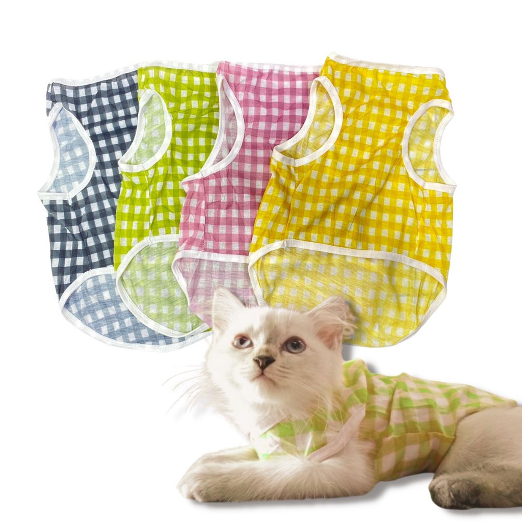 Hobi & Koleksi > Pakaian & Aksesoris Hewan > Pakaian Hewan > MMM Baju Hewan Peliharaan Tank Motif Garis Kotak Lucu Untuk Kucing dan Anjing Baju Kucing Termurah Size S-XL Kaos Singlet Tanpa Lengan Anabul Kitten Puppy Pakaian Musim Panas Murah Pet Clothes Tank Shirt Stripe Small
