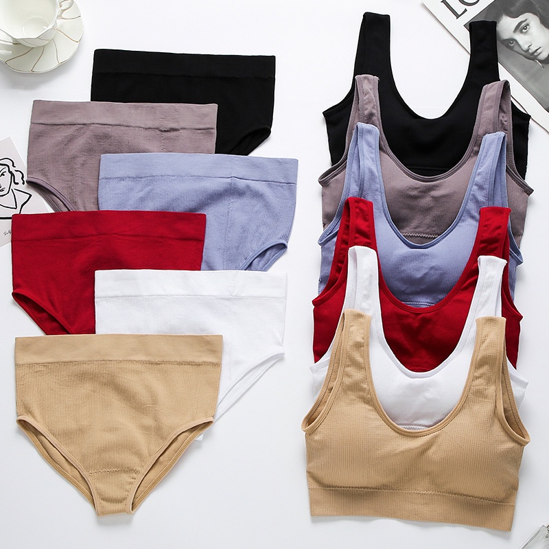 Pakaian Wanita > Pakaian Dalam > Set Pakaian Dalam > MMM Bra Sport Set Celana Dalam Wanita 6608 Model Vneck Sport Wanita One Set Tanktop BH Kolor Push Up Wanita Tanpa Kawat Elastis Pakaian Dalam Import Murah