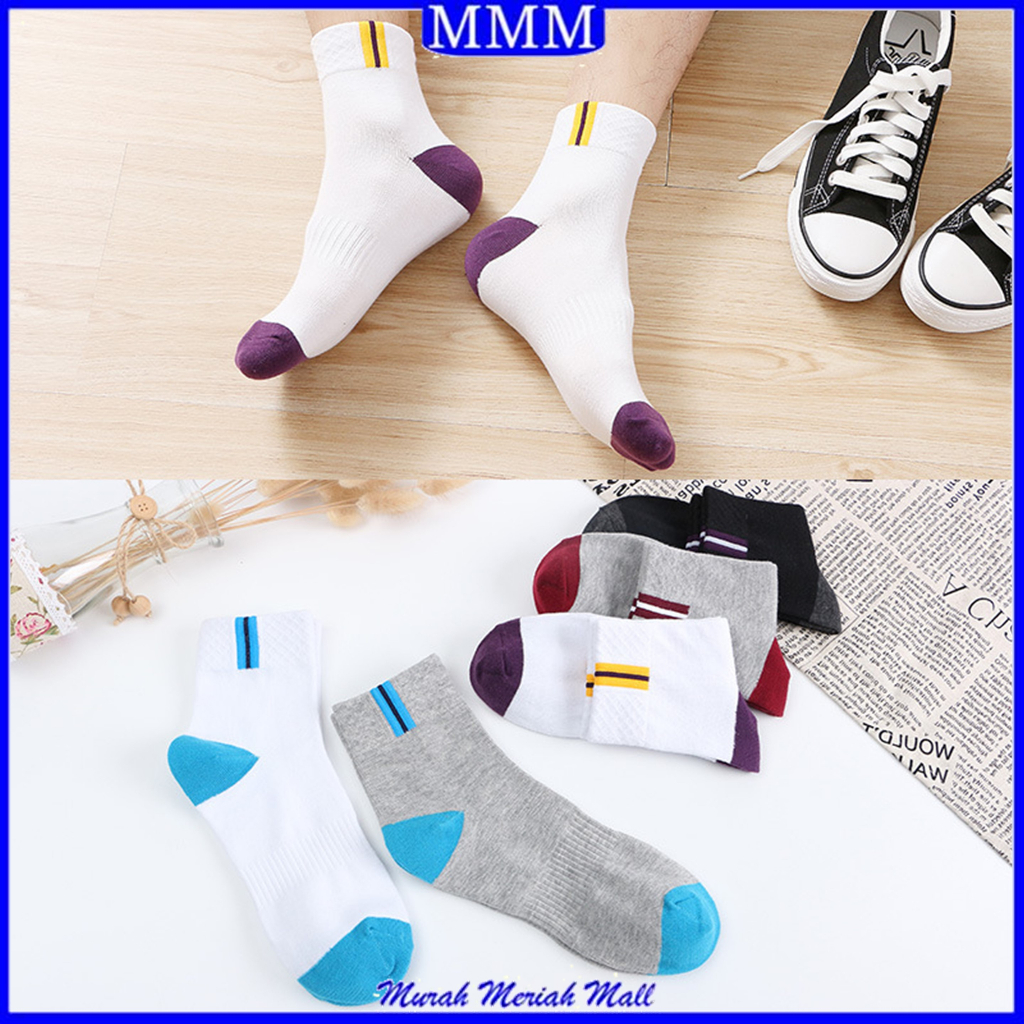 Sepatu Pria > Kaos Kaki > MMM Kaos Kaki Pria 3 Garis 6672 Motif Garis Kotak Kaus Kaki Panjang Fashion Korea Kerja Sekolah Gym Office Style Import Murah