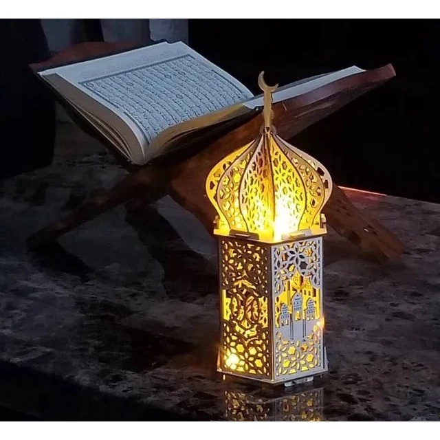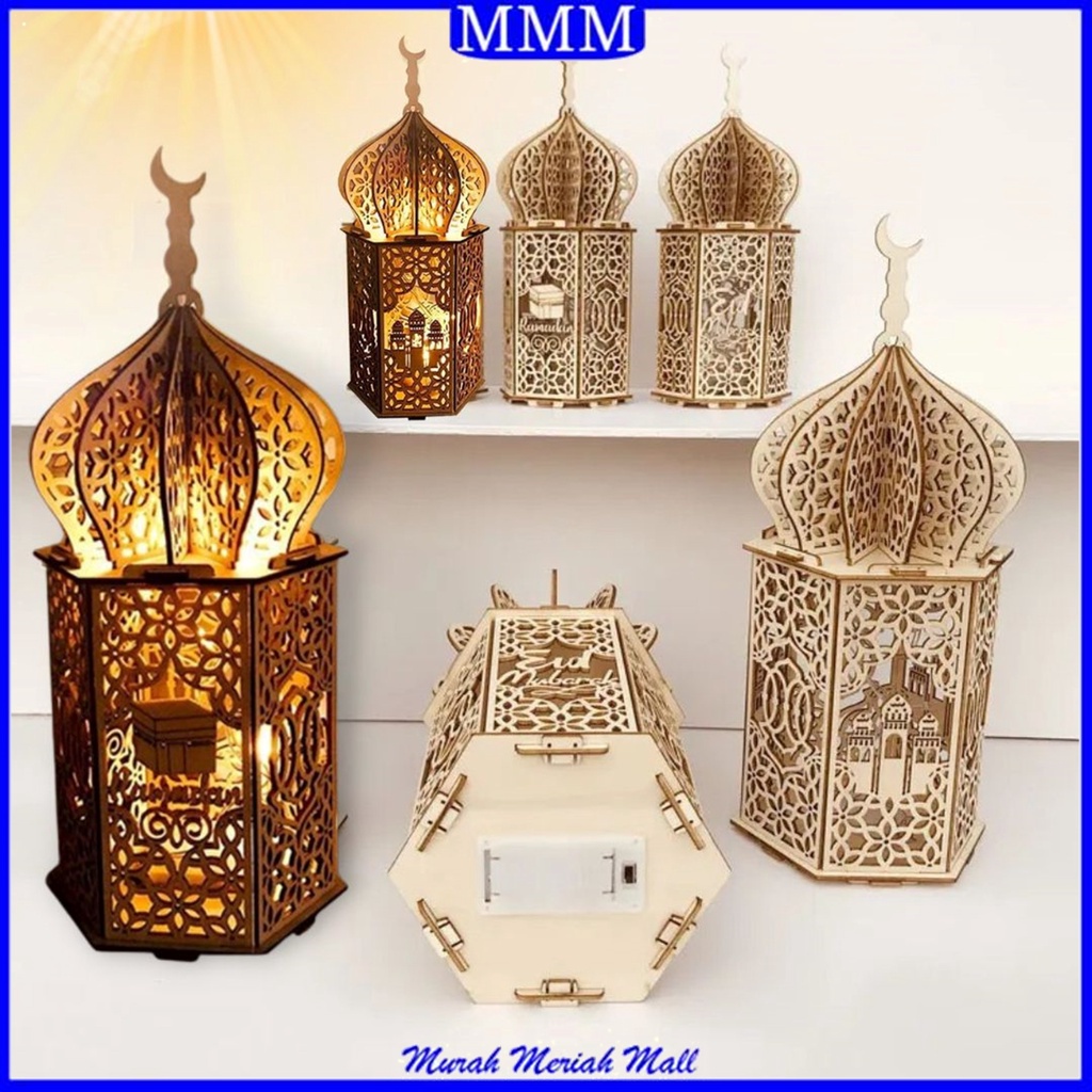 MMM Lampu Lentera LED Bentuk Masjid Eid Mubarak Dekorasi Hiasan Ramadhan Lamp Lattern Bahan Kayu DIY Led