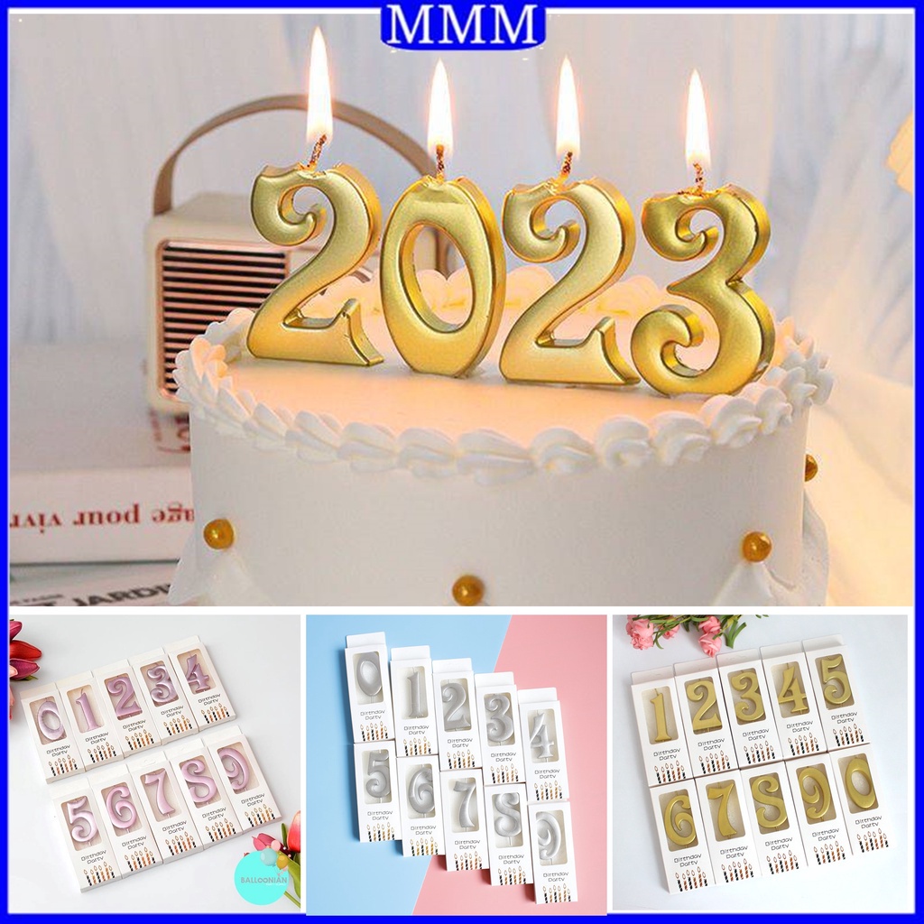 MMM Lilin Ulang Tahun Bentuk Angka 0 1 2 3 4 5 6 7 8 9 Warna Metalik Birthday Candle Number Elegant Lilin Pesat Warna Warni Gold Silver