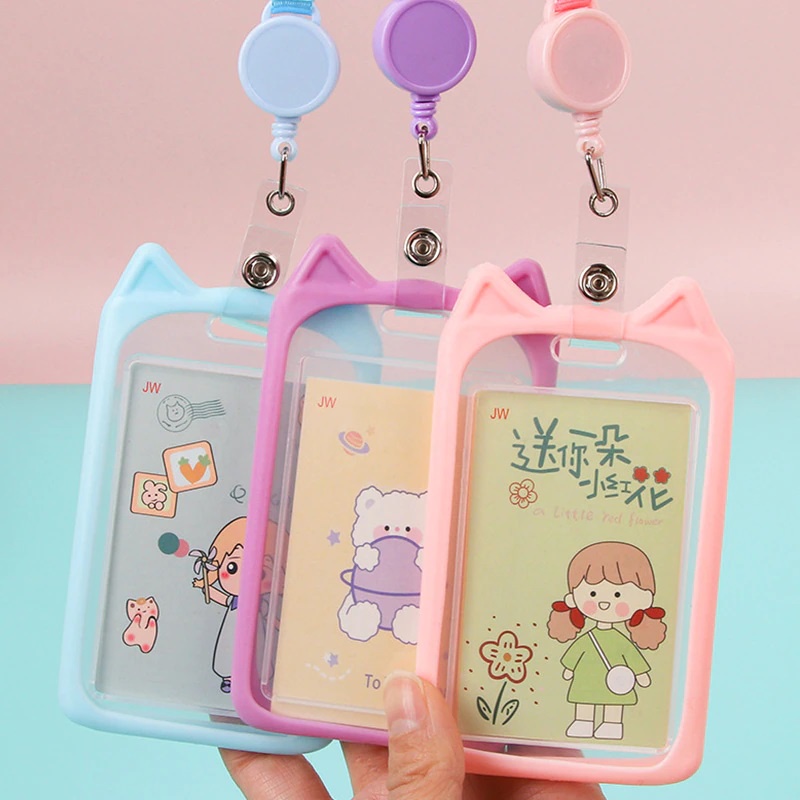 Buku & Alat Tulis > Perlengkapan Sekolah & Kantor > Lanyard & Name Tag > MMM Name Tag Lanyard Gantungan Kartu Karakter Kucing Lucu Akses MRT Busway E-Money Flazz BRIzi Bentuk Motif Warna Pastel Lanyart Card Holder Id Card