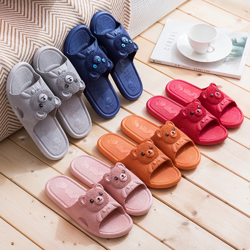 MMM Sandal Rumah Slop Karakter Bear 6567 Sendal Karet Couple Slip On Karet Empuk Home Slipper Anti Slip Wanita Gaya Korea Murah Import