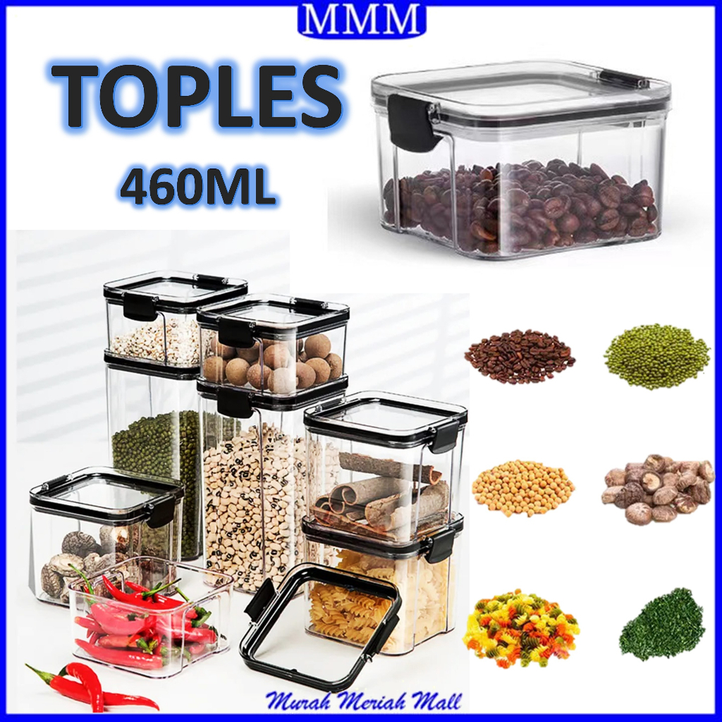 Detail MMM Toples Lebaran Kue Kering 460ml Penyimpanan Cereal Acrylic Plastik Bening 460 ml Kotak Transparan Kedap Udara Kontainer Makanan Storage Jar Food Tempat Bumbu Wadah Snack Storage Box Bahan Makanan Murah Import