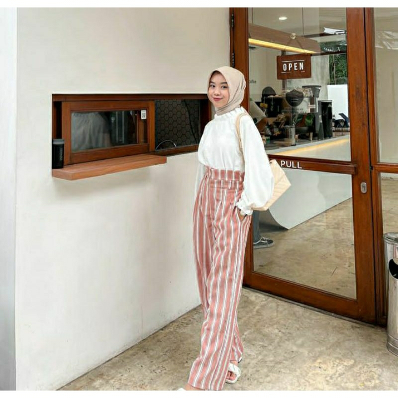 . MOANA BLOUSE HANYA #BLOUSE AJA# . Blouse Warna Putih : MOANA BLOUSE dengan model ruffle dikerah dan model lengan yg unik ..membuat blouse ini agak berbeda dan terlihat cantik. Klu ditanya nerawang ga ? Sprt warna putih pd umumnya...sedikit nerawang..tinggal pakai daleman aman dech. . ADA 2 PILIHAN BAHAN : Bahan CEY ROSA, lebih tipis dibading Bahan Crinkle Premium. Bahan Crinkle, lebih tebal dari CEY ROSA, utk size XL. NEW : BLOUSE SIZE M,L BAHAN Lady Crush. . SIZE L LD 100-105cm, Lingkar Ketiak 50cm, Panjang 65cm. SIZE XL 115cm, Lingkar Ketiak 53cm, Panjang 70cm. . ONESET . DETAIL UKURAN KULOT : ‼️‼️PERHATIKAN‼️‼️ * Size M : lingkar paha 60cm, cocok utk BB max 57kg, TB max 158cm, panjang celana 100cm, lingkar pinggang 65cm max 88cm * Size M-L setara L : lingkar paha 64cm, panjang celana 105cm, utk tinggi 158cm keatas dgn BB max 65kg, lingkar pinggang 70-92cm. * Size XL-XXL : lingkar paha 70cm, panjang celana 107cm, cocok utk BB max 85kg, lingkar pinggang 85-110cm . Kalau masih bingung utk tentukan size chat admin.