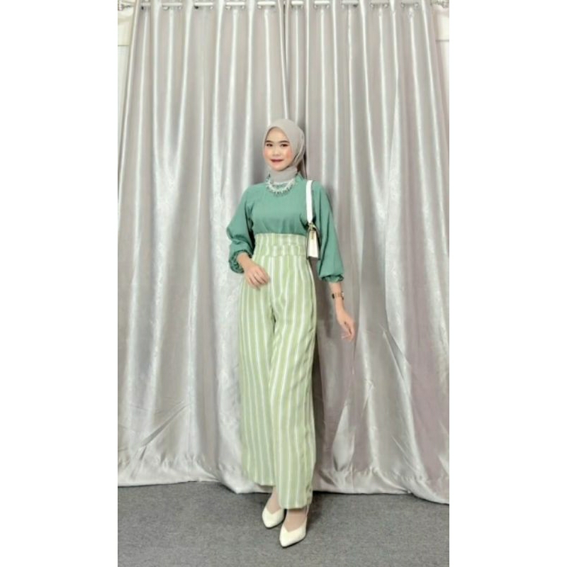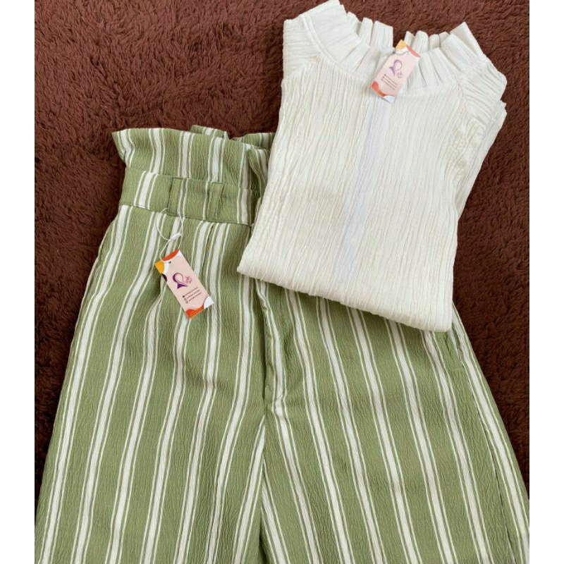 MOANA ONESET WARNA SAGE GREEN MIX DUSTY GREEN. BAHAN CRINKLE. ️️DETAIL SIZE : Size M : lingkar paha 60cm, cocok utk BB max 58kg, TB max 158cm, panjang celana 100cm, lingkar pinggang 64cm-88cm, belakang full karet. Size M-L setara L : lingkar paha 64cm, panjang celana 105cm, cocok utk BB diatas 55kg, tinggi diatas 157cm, lingkar pinggang 70-90cm. Size XL-XXL BIG SIZE : INI UKURAN BESAR lingkar paha 70cm, panjang celana 107cm, BB max 85kg, lingkar pinggang 85-110cm. . Moana Cullote ini bisa dijadikan solusi buat kamu yg mau keliatan lebih tinggi/jenjang, bahannya pun nyaman dipakai. . Klu bingung tentukan SIZE, chat ADMIN. . Blouse / Baju Atasan, tersedia dalam 2 warna : Broken white : M,L Bahan Lady Crush dan XL bahan crinkle Dusty Green M,L,XL bahan ladycrush. Blouse ini lucu lohhh...model ruffle dikerah dan model lengan yg unik ..membuat blouse ini agak berbeda dan terlihat cantik. Size M, L : LD 98_105cm, panjang 65cm XL : LD 115_120cm, panjang 70cm, . Happy Shopping