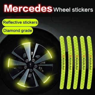 20Pcs Mercedes Benz stiker peringatan stiker reflektif roda mobil untuk W203 W210 W211 W124 W202 W204 AMG E300L E300L S-Class C-Class c180 glk300 cls clk slk