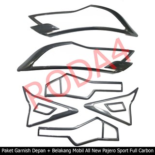 Paket Garnish Lis Lampu Depan Dan Belakan All New Pajero Sport CARBON