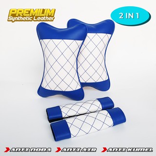 [ FREE COVER SEATBELT ] Bantal Mobil Bantal Headrest - Hitam Biru