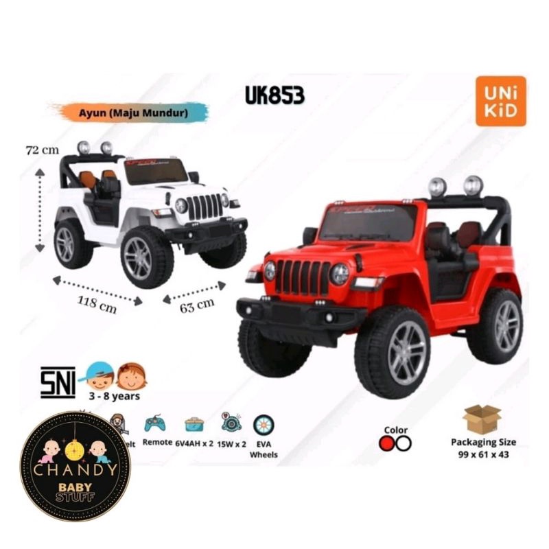 Detail MOBIL AKI MAINAN ANAK JEEP RUBICON BAN KARET UNIKID UK 853