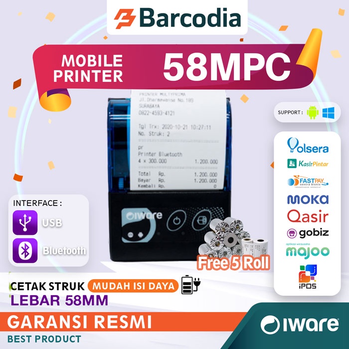 Mobile Printer Bluetooth - Mini Printer HP Android - Iware MP58MPC free 5 roll kertasMobile Printer Bluetooth - Mini Printer HP Android - Iware MP58MPC free 5 roll kertasMobile Printer Bluetooth - Mini Printer HP Android - Iware MP58MPC free 5 roll kertasMobile Printer Bluetooth - Mini Printer HP Android - Iware MP58MPC free 5 roll kertas