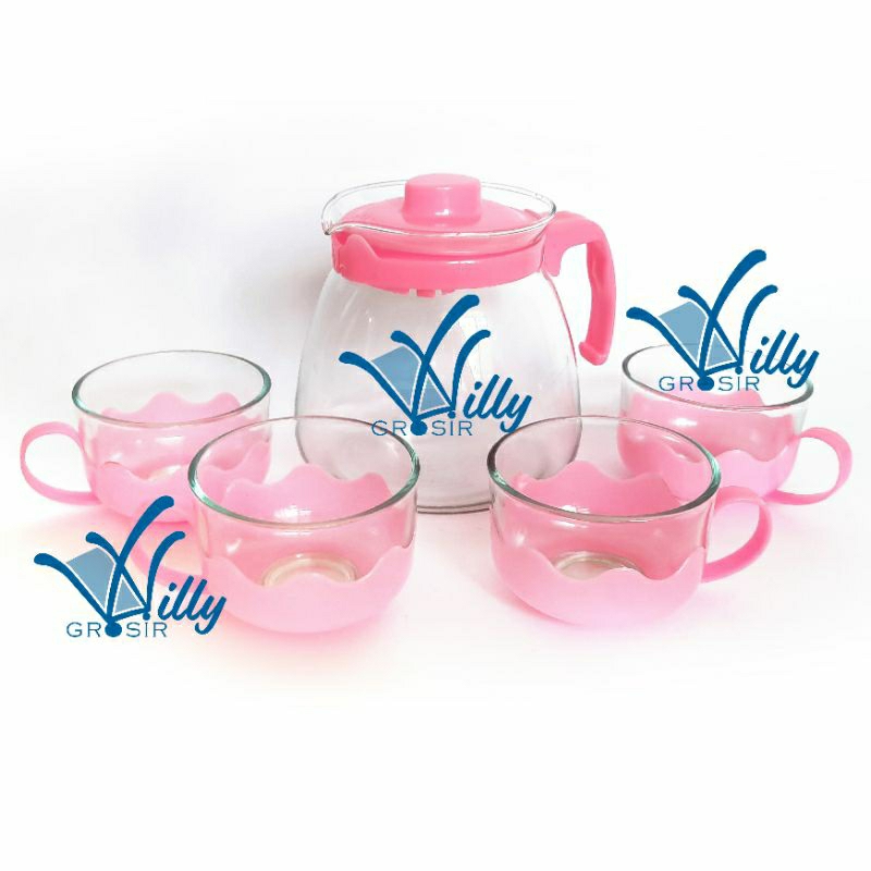 Moci TeaPot Set 5 in 1 Cangkir Kaca Set isi 5