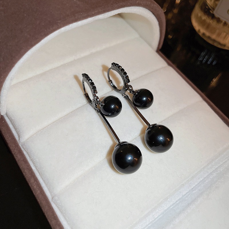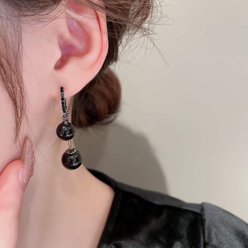 Detail Mode Baru Gaya Retro Berlian Imitasi Anting Buatan Bertatahkan Hitam Bola Kecil Rumbai Anting Earrings Wanita