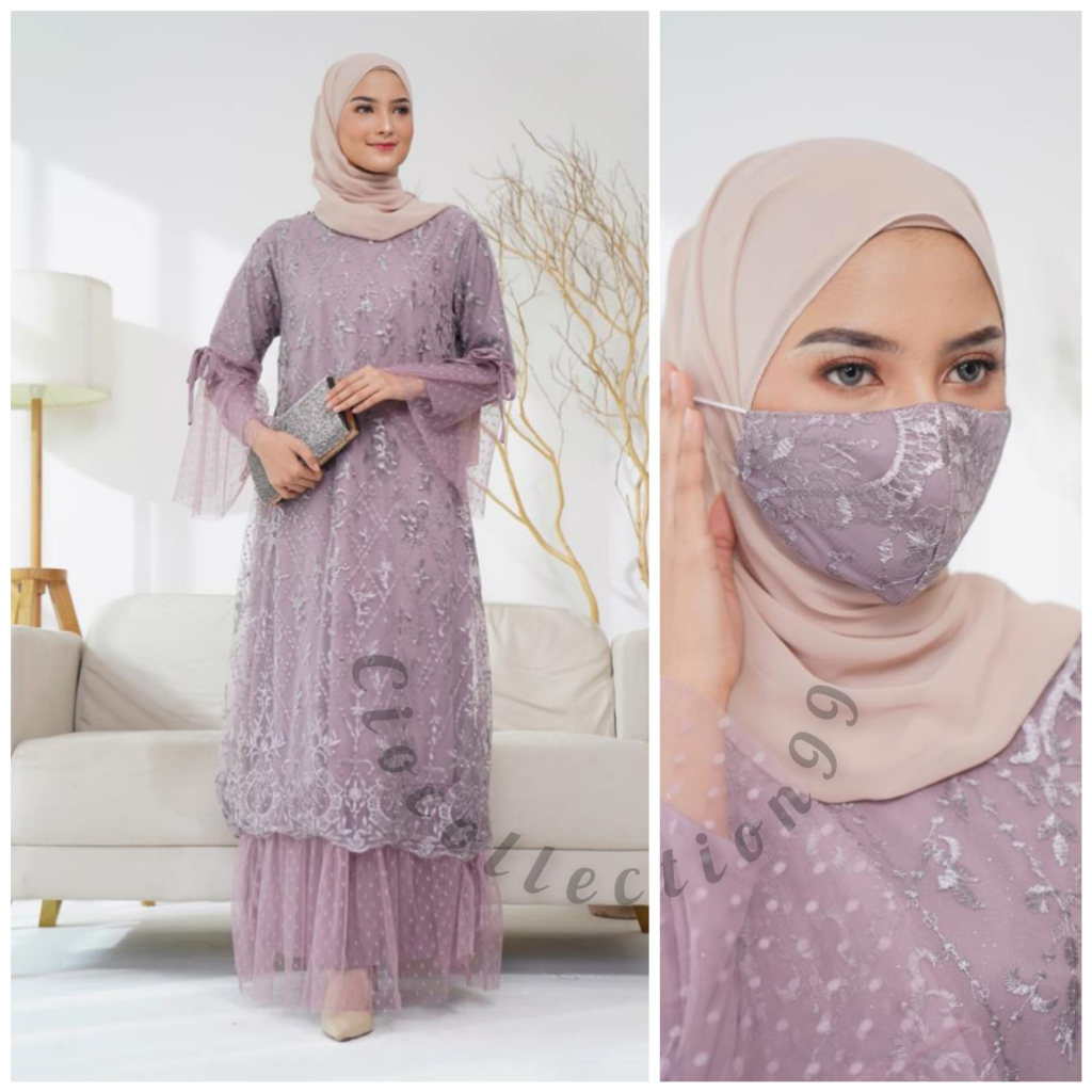 -Free Masker -Brukat Premium Full Depan Belakang Mix Tiledot Lapis Furing -Sleting Belakang -Tangan Terompet -Untuk motip brukat bisa ganti ya, tergantung persediaan dari pabrik