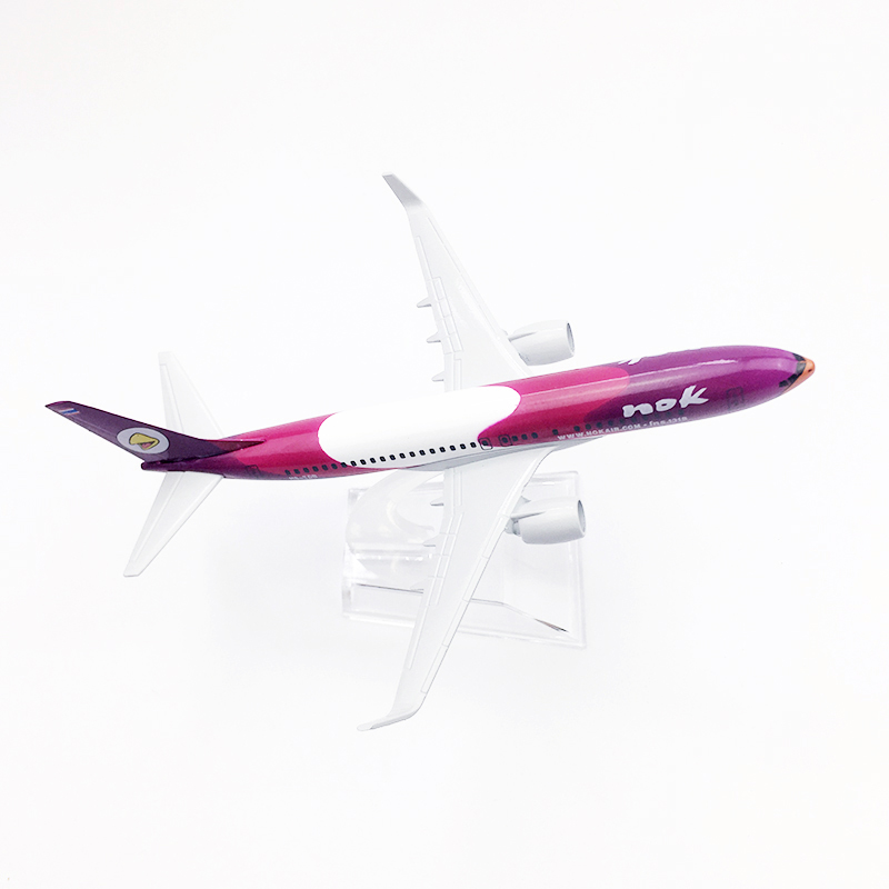 Detail Model Pesawat Terbang Thailand Airways NOK Boeing 737 Bahan Alloy Warna Ungu Ukuran 16CM