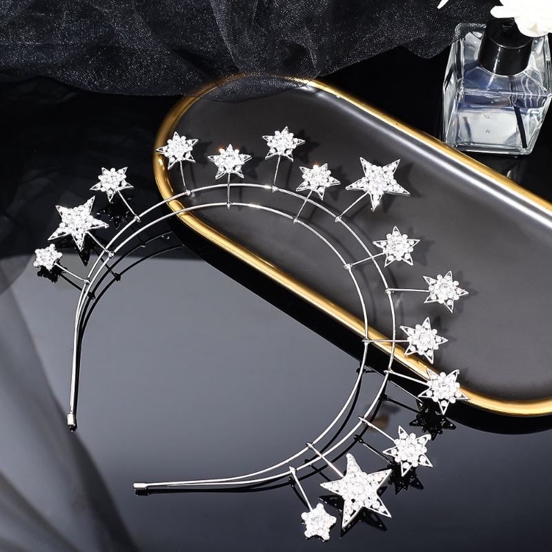 Aksesoris Fashion > Aksesoris Rambut > Bando & Bandana > Model Runway Bando Aksesoris Fairy Style Dekoratif Rambut Band Sparkling Bridal Hiasan Kepala Bintang Berlian Hair Band