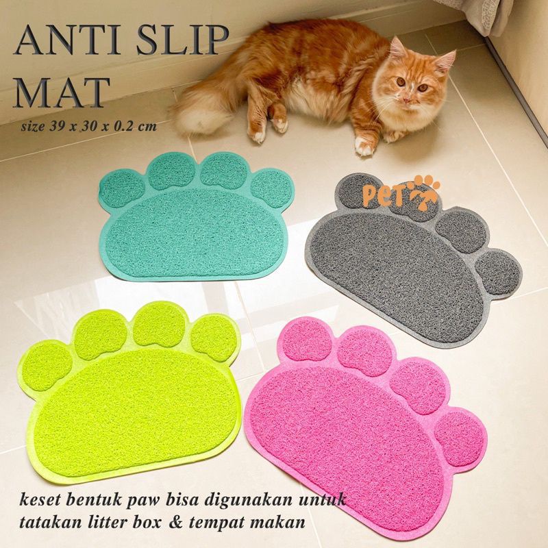 Letakan keset ini didekat kotak pasir kucing atau tempat makan. Berfungsi untuk menyaring pasir yang menempel pada kaki kucing sehingga membuat rumah Anda tetap bersih dan higienis.