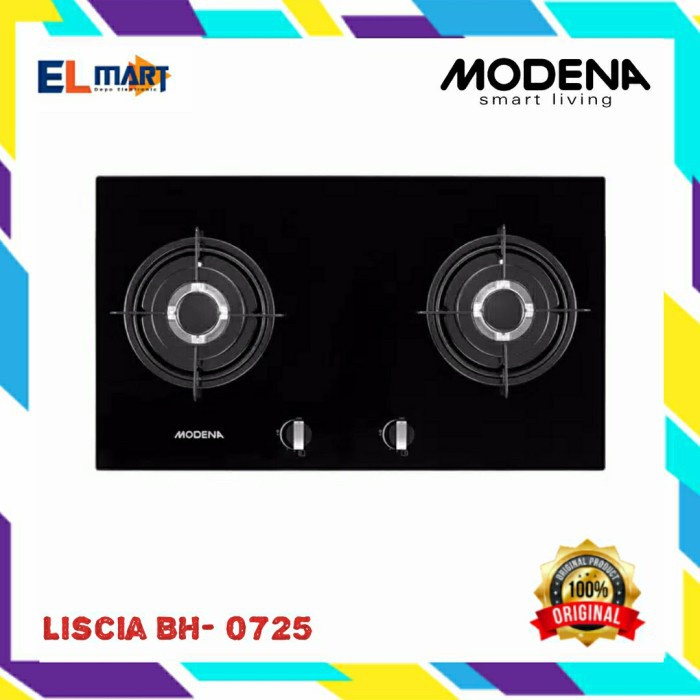 Perlengkapan Rumah > Peralatan Masak > Kompor & Regulator Gas > Modena Kompor Tanam 2 Tungku BH 0725 - BH0725 Liscio Gas Hob Kaca