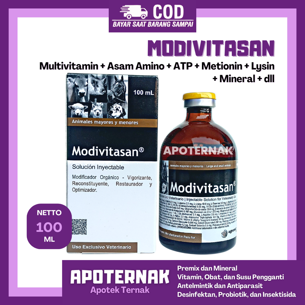 Detail MODIVITASAN 100 ml | Multivitamin Lengkap dengan Asam Amino ATP Lysin Methionine Threonine Zinc Penguat Otot