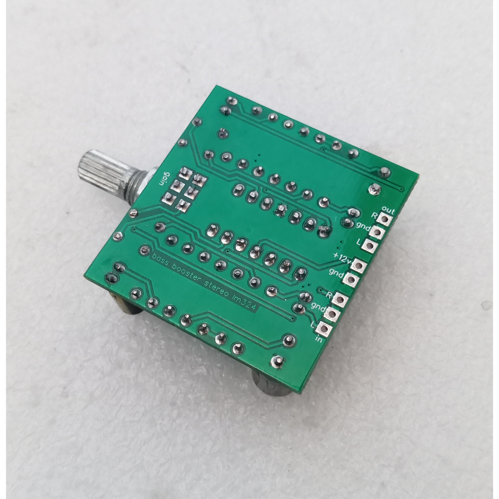 - Modul bass booster berfungsi untuk menambah nada bass dan treble (umum di pasaran dengan nama super bass / giga bass). - Cara pemasangan out disambungkan ke power amplifier, dan in disambungkan ke out tone control. - Tegangan 9-12v dc (non CT/ single vcc) - Dimensi PCB 40 x 37 mm. - Harap tidak mempermasalahkan warna elco.