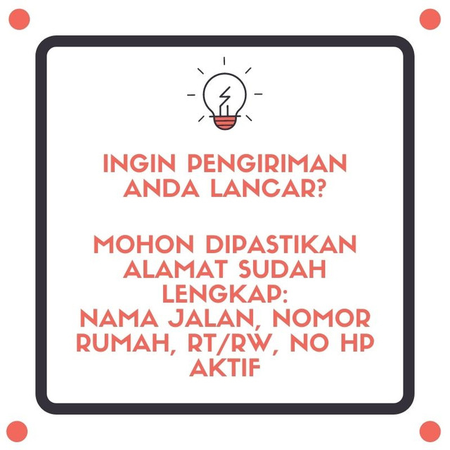 MOHON PASTIKAN ALAMAT SUDAH LENGKAP: NAMA JALAN, NOMOR RUMAH, RT/RW, NO HP AKTIF