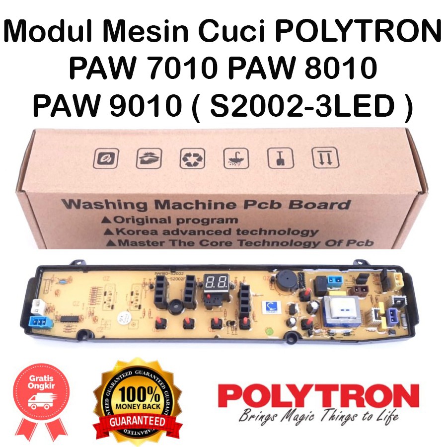 Modul Mesin Cuci POLYTRON TIPE PAW 7010 PAW 8010 PAW 9010 PAW 7009 PAW 7010LB NO MESIN ( S2002-3LED