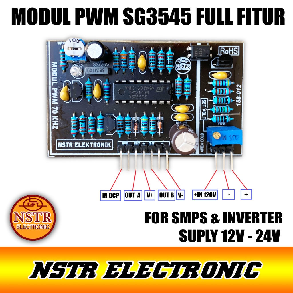 Modul pwm ini bisa dipergunakan untuk smps dan inverter dan juga jenis smps atau inverter yang mempunyai sistem regulasi dan juga tersedia sistem ocp dan anti koslet