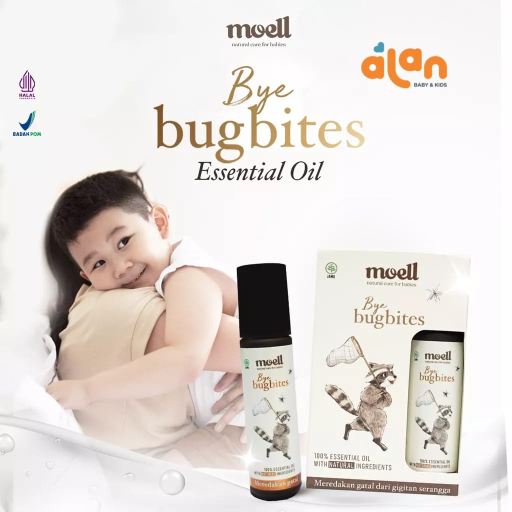 Moell Bye Bugbites Natural Essential Oil merupakan Essential Oil yang diciptakan untuk membantu meredakan serta melindungi gigitan nyamuk dan serangga pada baby. Essential Oil yang terbuat dari Full bahan natural yang aman untuk baby.