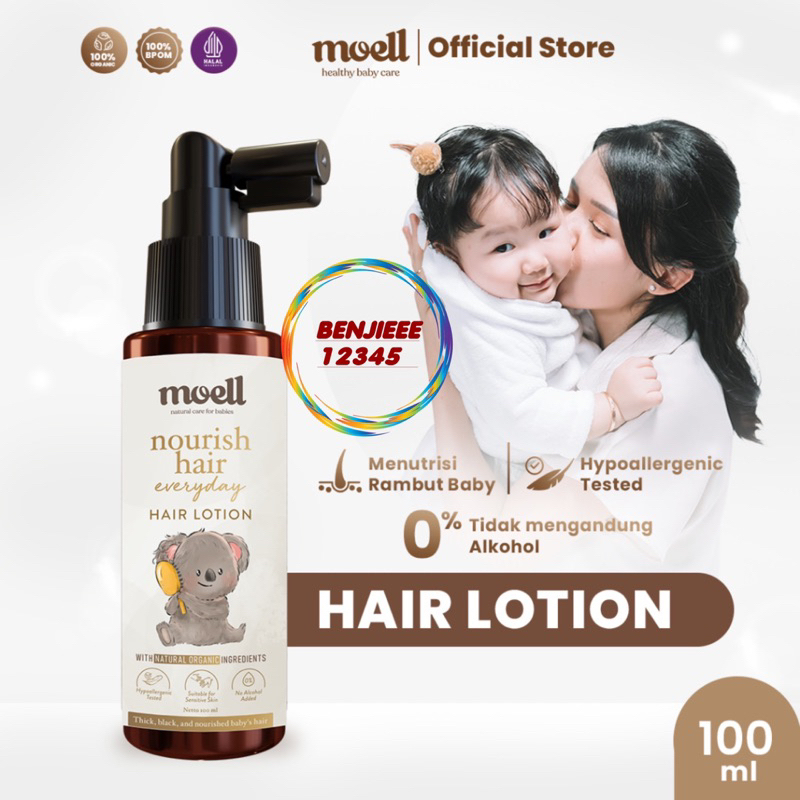 Video perkenalan produk Moell HAIR LOTION 100ml Nourish Hair Everyday hair lotion menutrisi rambut bayi Moel MOELL moell LOTION BABY. Sumber: Shopee.