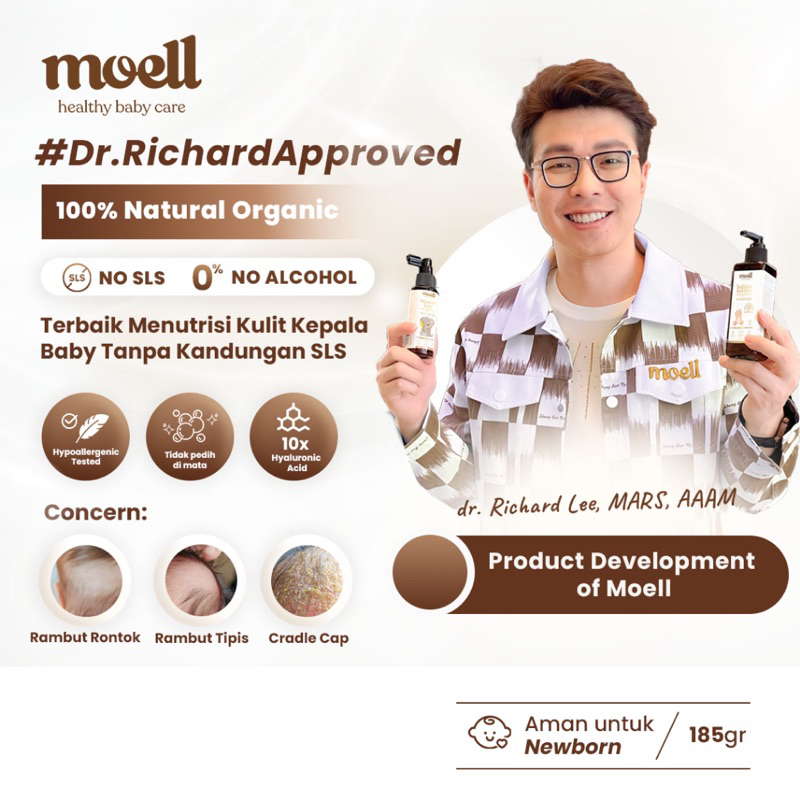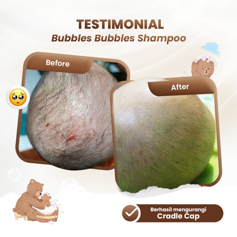 Bubbles bubbles everywhere shampoo adalah satu-satunya shampoo bayi dengan bahan Full Natural organic tanpa kandungan SLS dan tanpa alkohol, diperkaya dengan kandungan 3 essential oil(Organic Avocado Oil, Calendula Oil, Argan Oil, 10x Hyaluronic Acid) yang dapat membersihkan kulit kepala bayi dengan lembut, menghaluskan dan memberikan keharuman pada kulit rambut bayi. Rambut tampak lebih sehat, hitam, dan lebat dengan pemakaian teratur bersama Moell Hair Lotion