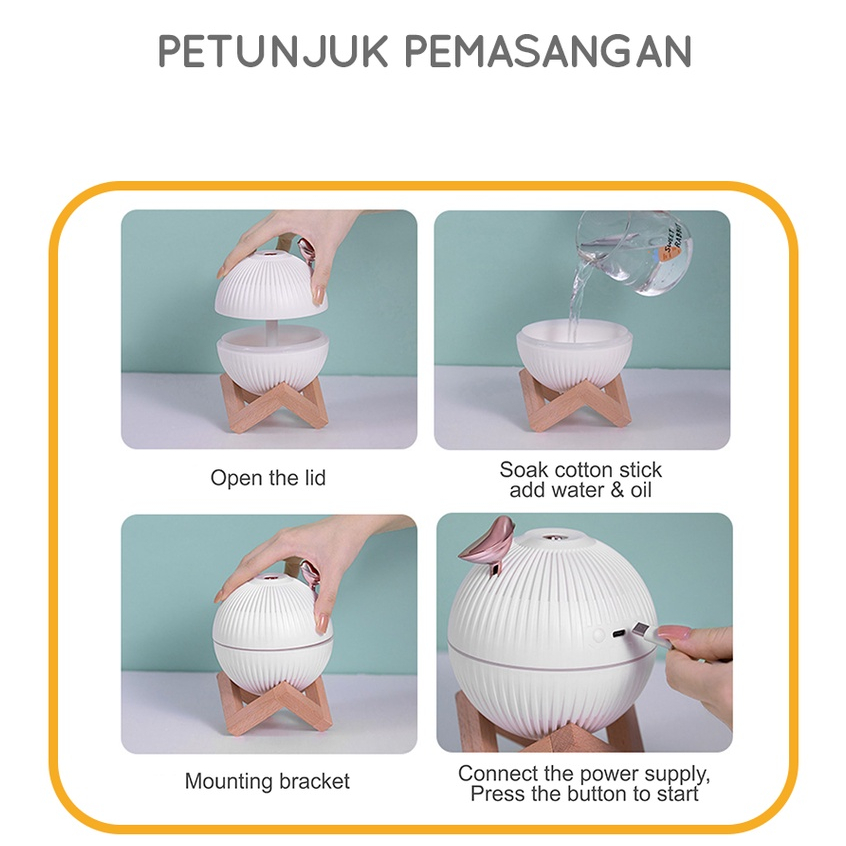 Detail Moi 300ML Aesthetic Humidifier Diffuser Air Purifier Aromaterapy Bentuk Sangkar Burung