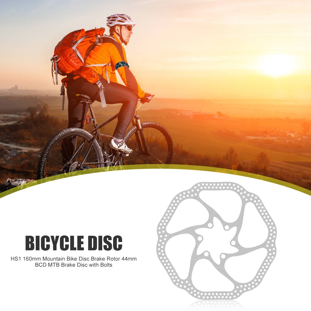 HS1 160mm Mountain Bike Disc Brake Rotor 6-Bolt 44mm BCD MTB Brake Disc with Bolts Bicycle Parts Features: Suitable for off-road riding; Using cross-drilling technology, when used with high intensity, the lightweight hs system guarantees heat dissipation and provides performance suitable for humid environments.